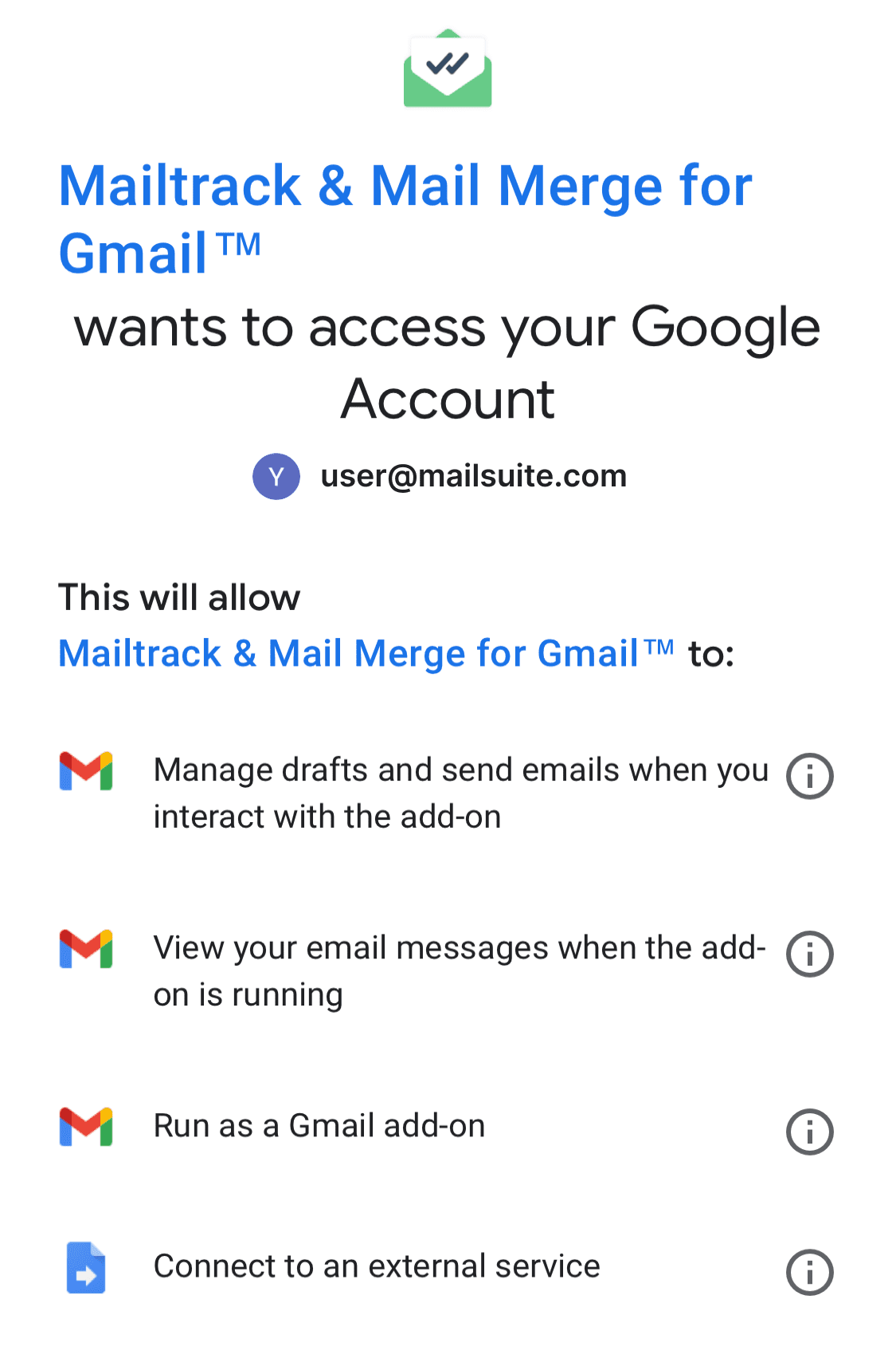 - The next part will be asking for permission. Click the “Allow” button to continue. At this point, the installation will begin. You can read the exact details of the use of permissions by Mailsuite here.