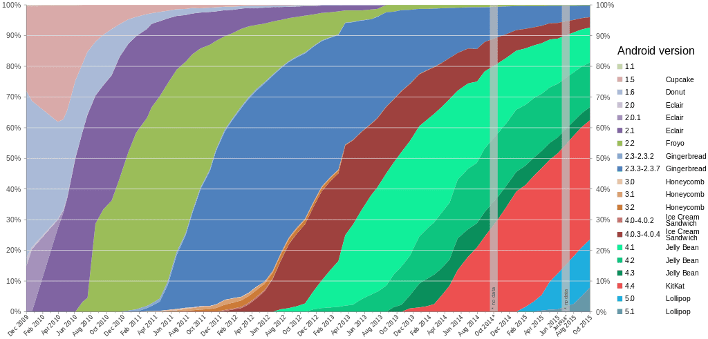 Since the initial release of Android 1.0 there have been several major updates to the OS. Google usually gives their major versions a codename that resembles of a desert and the starting letter follows alphabetical ordering. The latest version 6 is called Marshmallow and was only released a few days ago. Here is a list of versions that went public:
