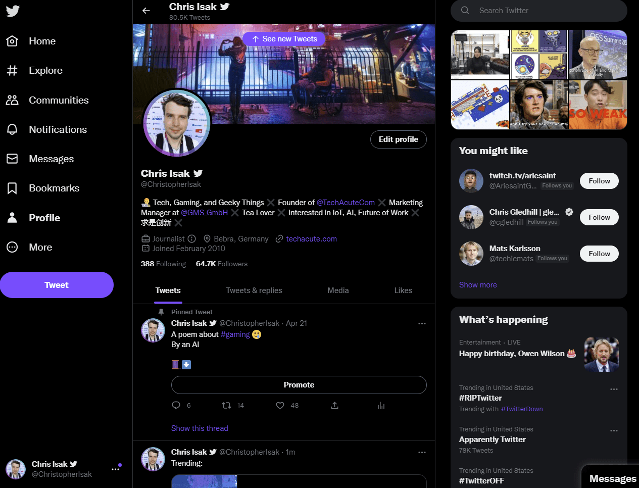 It might be that you don’t receive another notification via email once the backup and archive data are available for you, so it makes sense to check on the same page every now and then, after the 24 hours of processing have passed. The file you can then download is likely going to vary in size, depending on what and how often you tweeted. The file will also include media from DMs, so if you used the chat function heavily, this is likely to reflect on the size of the backup archive file. Even though the file is prepared as a compressed zip file, mine was more than 5 GB in size.